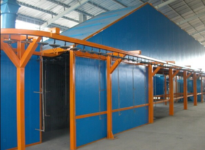 烘干室是對(duì)涂層進(jìn)行烘干,使涂料在進(jìn)行施涂以后讓其去水分干燥以達(dá)到附著于工件表面的工作間。烘干室更具工件的結(jié)構(gòu)不同,而采取的加熱方式的不同分為天然氣加熱烘干、電加熱烘干、蒸汽加熱烘干和遠(yuǎn)紅外加熱烘干等。- 一般為了工件快速降溫會(huì)在烘干室出口設(shè)置強(qiáng)冷室。